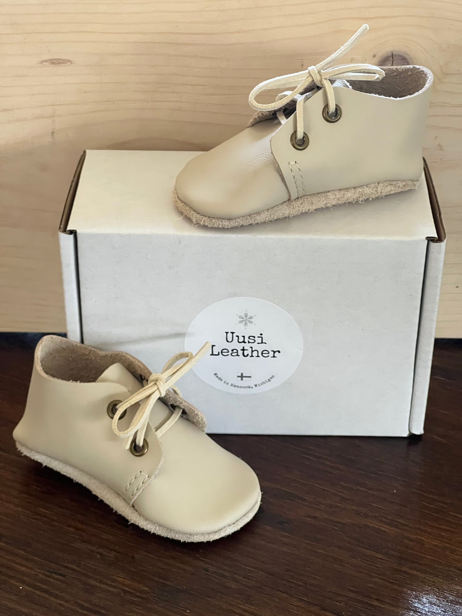 Color: (Lumikide~Snow Crystal) light cream smooth with cream faux suede laces
